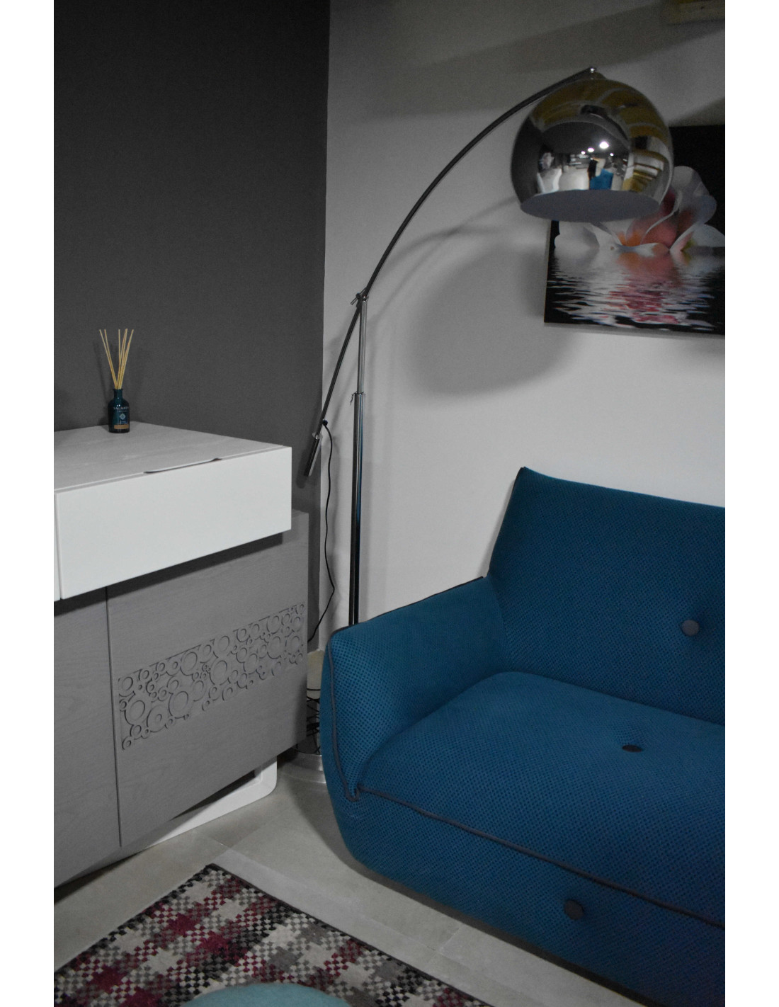 Con un design contemporaneo e una finitura cromata affascinante, questa lampada da terra aggiunge un tocco di eleganza e modernità a qualsiasi spazio.