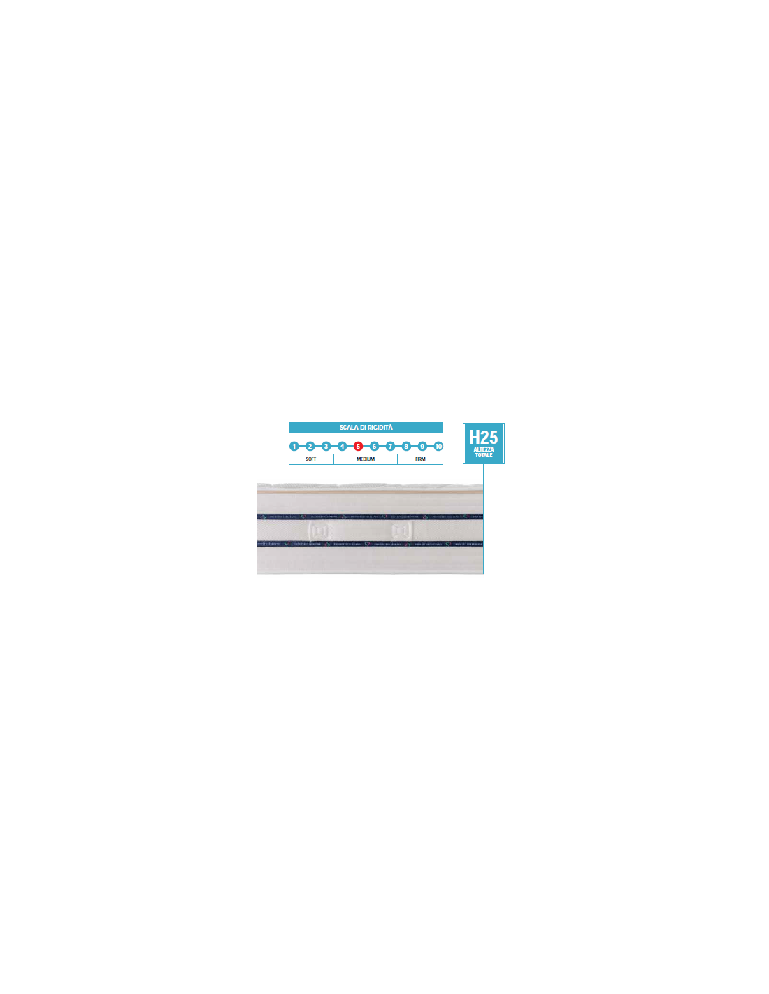 - Una struttura di 800 molle indipendenti a 7 zone di portanza differenziata, per un sostegno bilanciato delle varie parti del corpo.