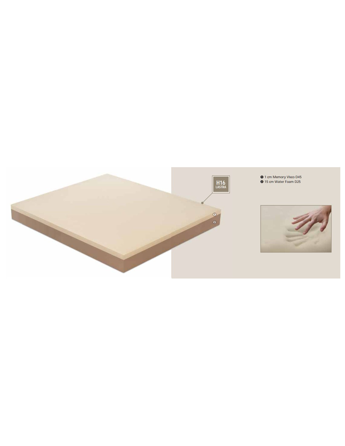 2. Strato in Water Foam, schiuma ad alta densità a base di acqua e a cellule aperte, altamente traspirante e in grado di fornire un supporto ergonomico.