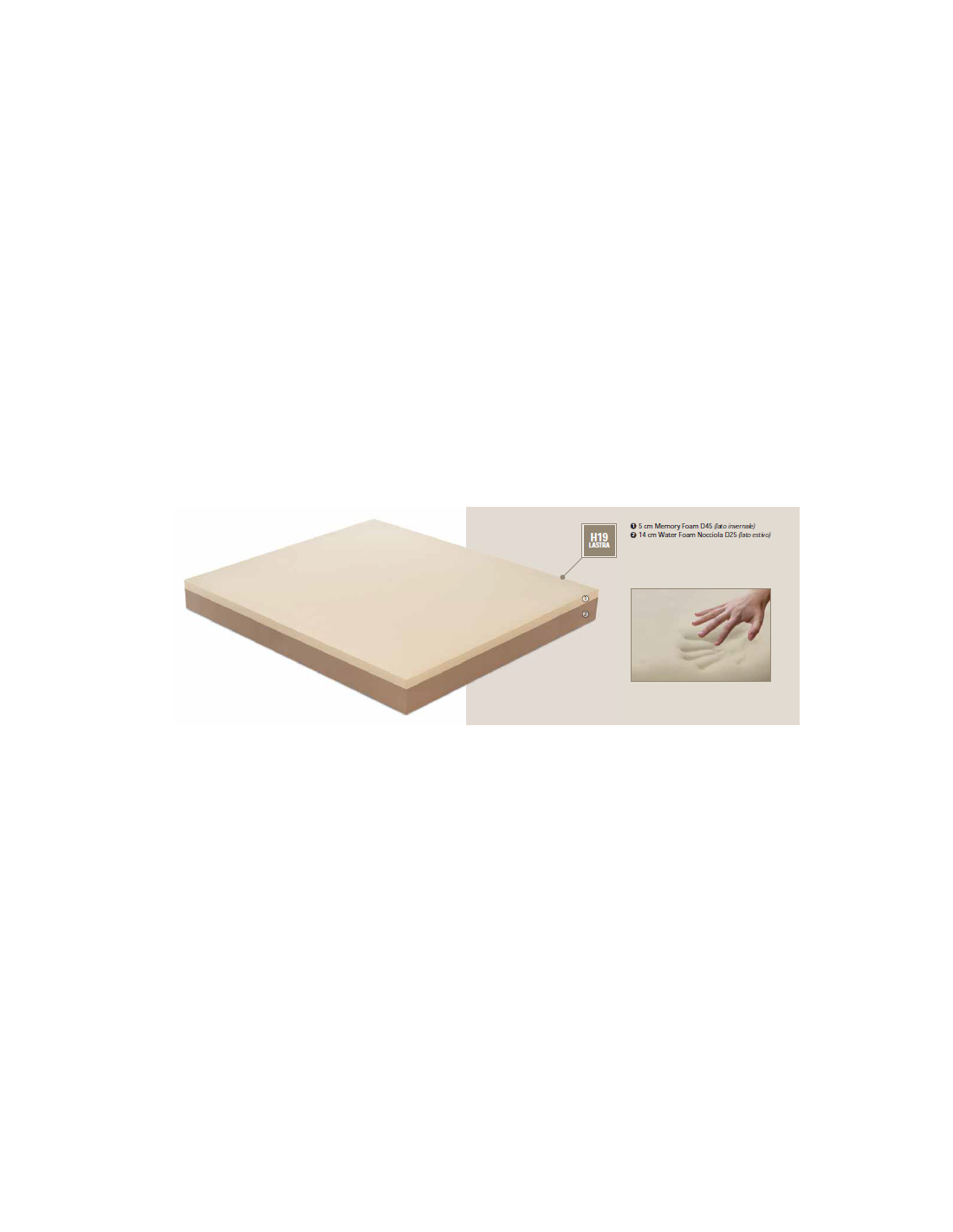 - Strato superficiale (lato invernale) in Memory Visco, schiuma termoregolare e viscoelastica, che contrasta la percezione di eccessivo calore e permette al materasso di adattarsi perfettamente alle forme del corpo diminuendo i punti di pressione.