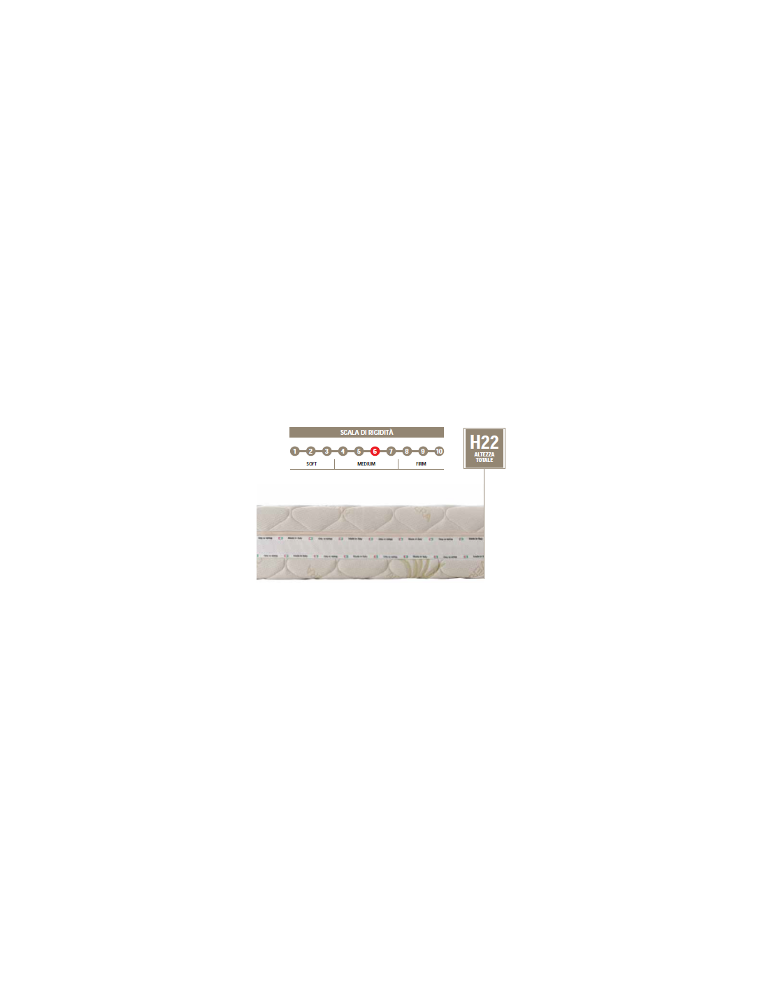 Traspirante ed estremamente elastica, la struttura del materasso Diamante è composta da una panca 2 strati a 7 zone differenziate e, nello specifico da: