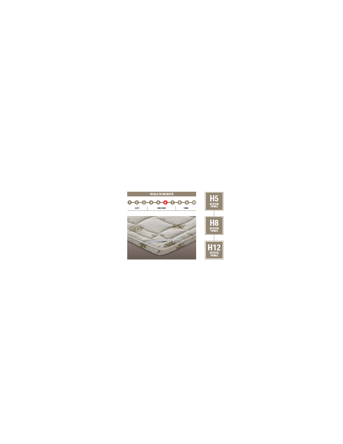 La fodera a rivestimento fisso è in cotone imbottito con fibre in Aloe Vera, tessuto rigenerante e emolliente, che aumenta il livello di energia e migliora il benessere complessivo.