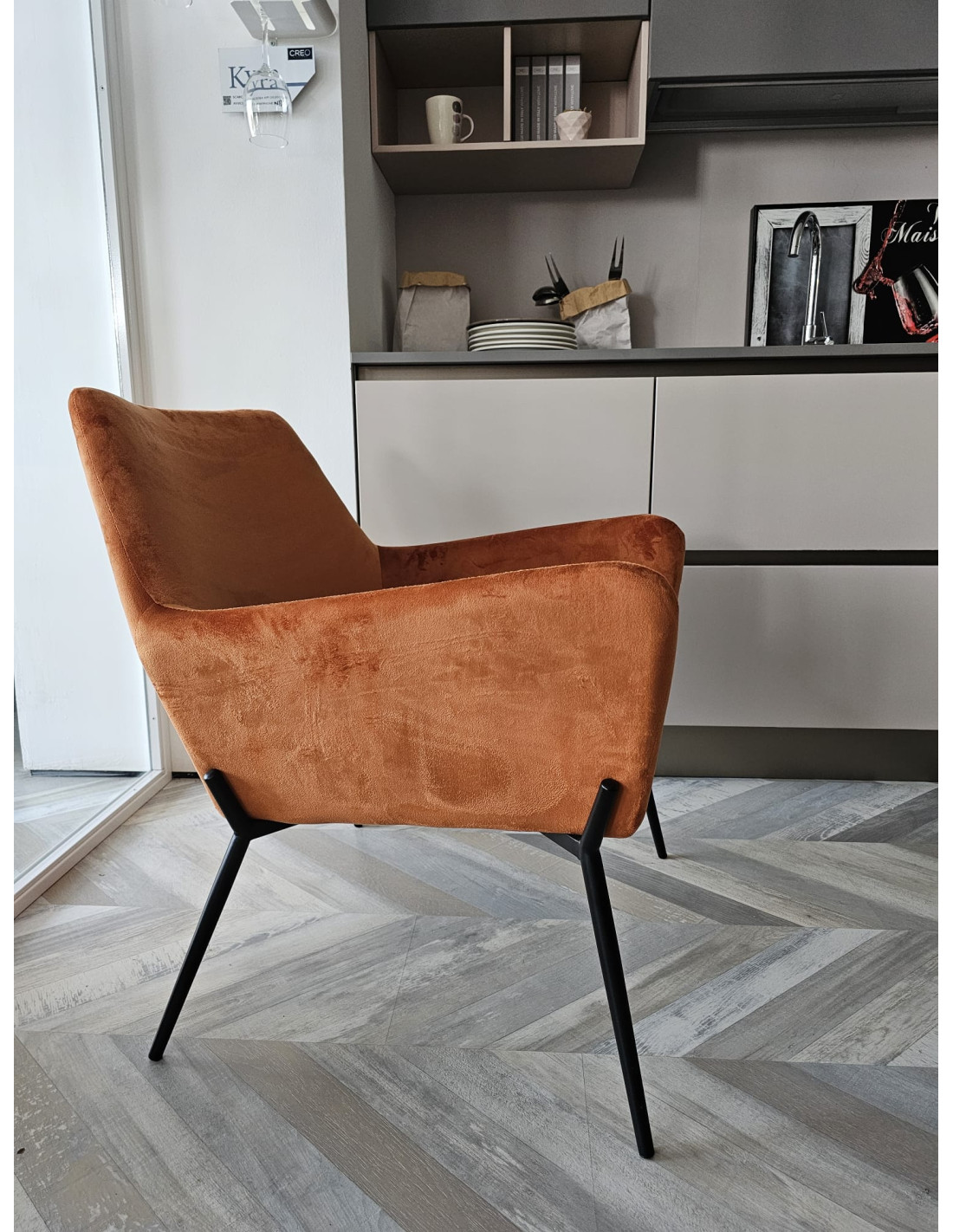 Il suo colore vellutato aggiunge un tocco di calore e raffinatezza all'ambiente, mentre la base in metallo nero conferisce stabilità e un tocco di modernità al design. Oltre alla sua estetica mozzafiato, questa poltrona è anche incredibilmente comoda e funzionale.