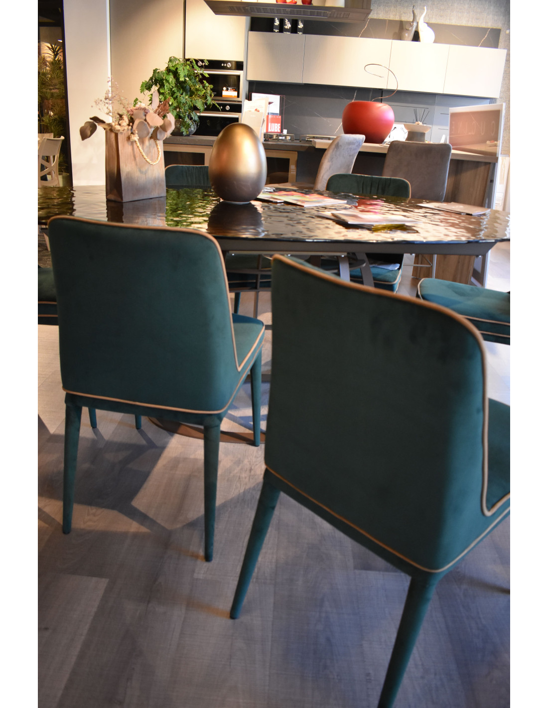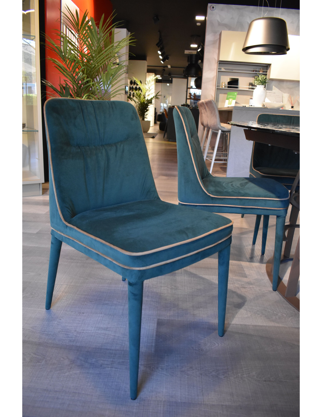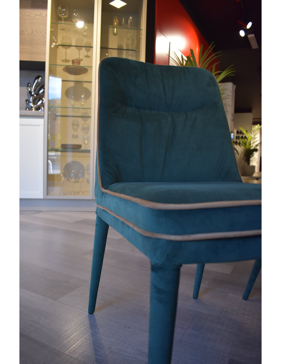 Ciò che rende davvero unica questa sedia è l'originale ed elegante bordino che segue con precisione il profilo dello schienale e della seduta, conferendo un grande impatto visivo e un design estremamente elegante.
