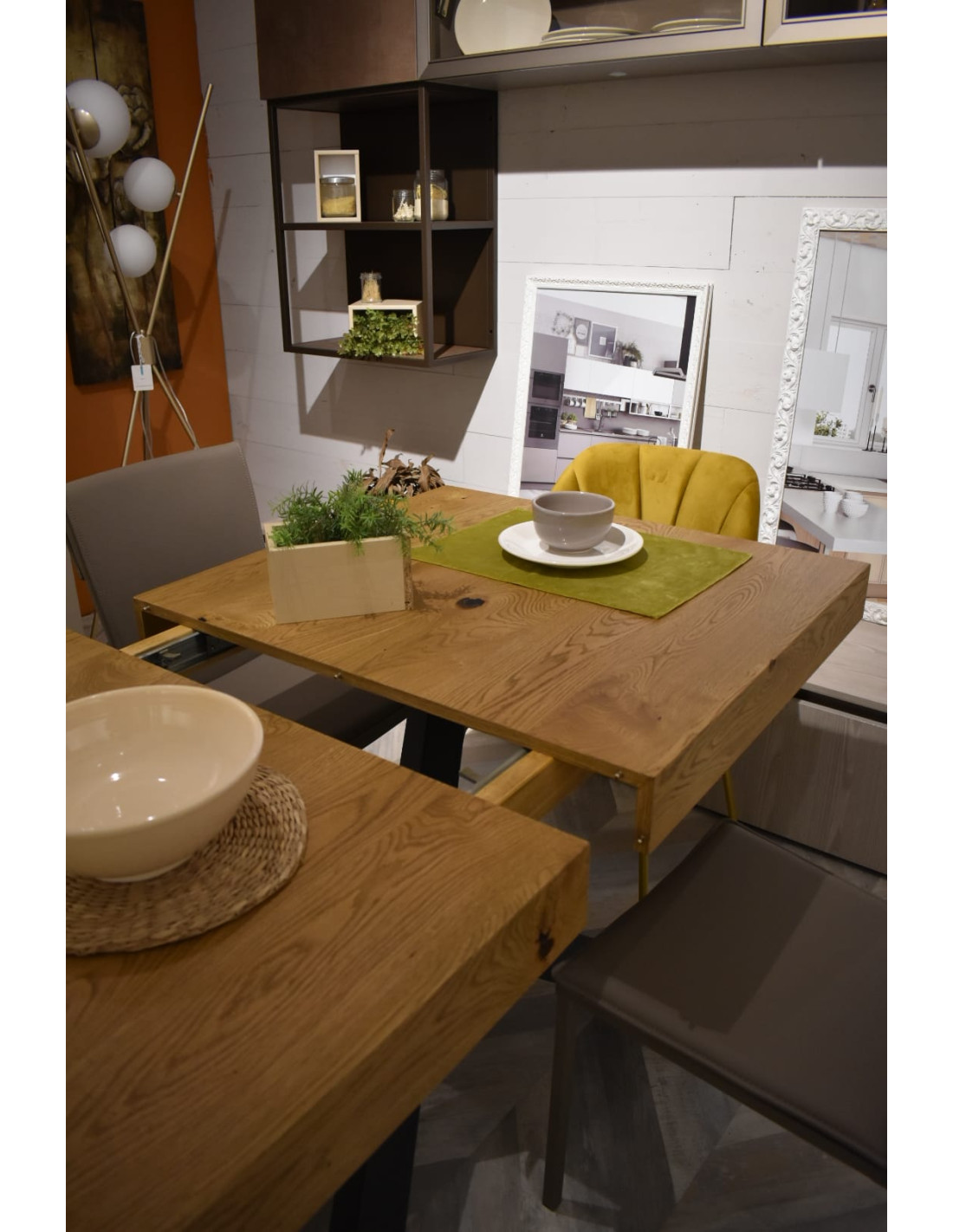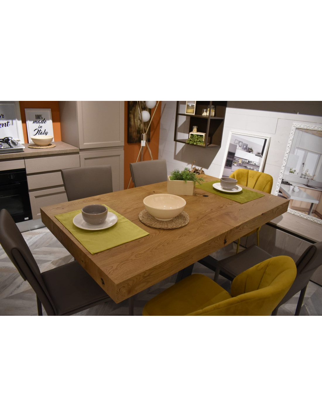 Il tavolo rappresenta l'unione perfetta tra il fascino naturale del listellare rovere nodato e la praticità di un tavolo estensibile, ideale per adattarsi alle tue esigenze e a quelle della tua famiglia.
