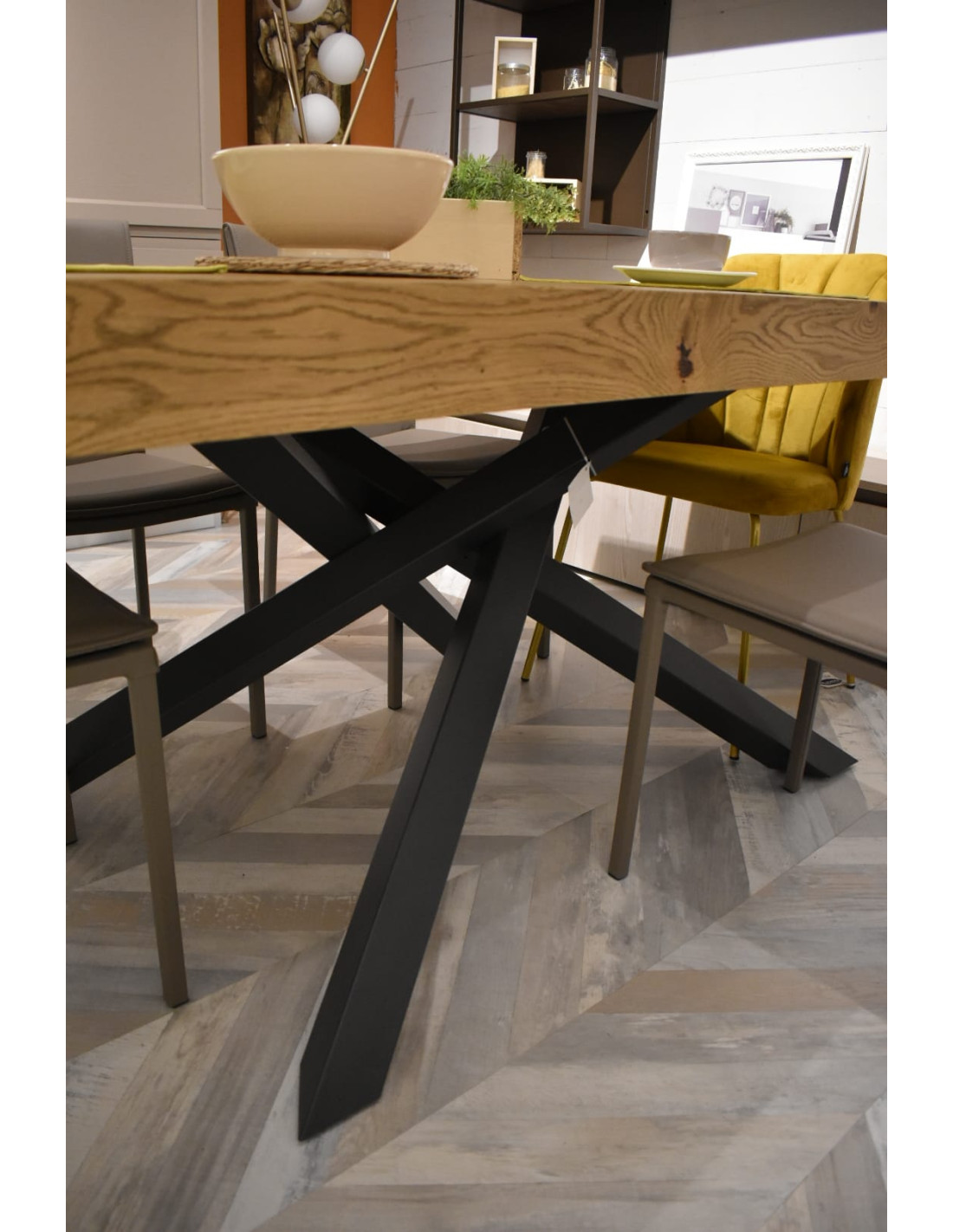 La bellezza del listellare rovere nodato dona al tavolo un aspetto naturale ed elegante, esaltando le venature e le sfumature del legno in modo autentico.