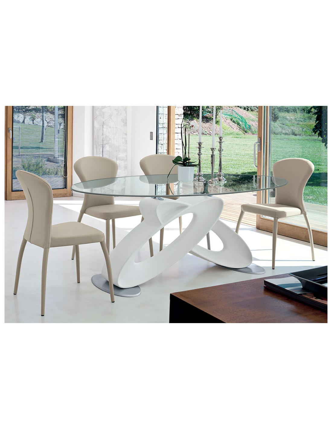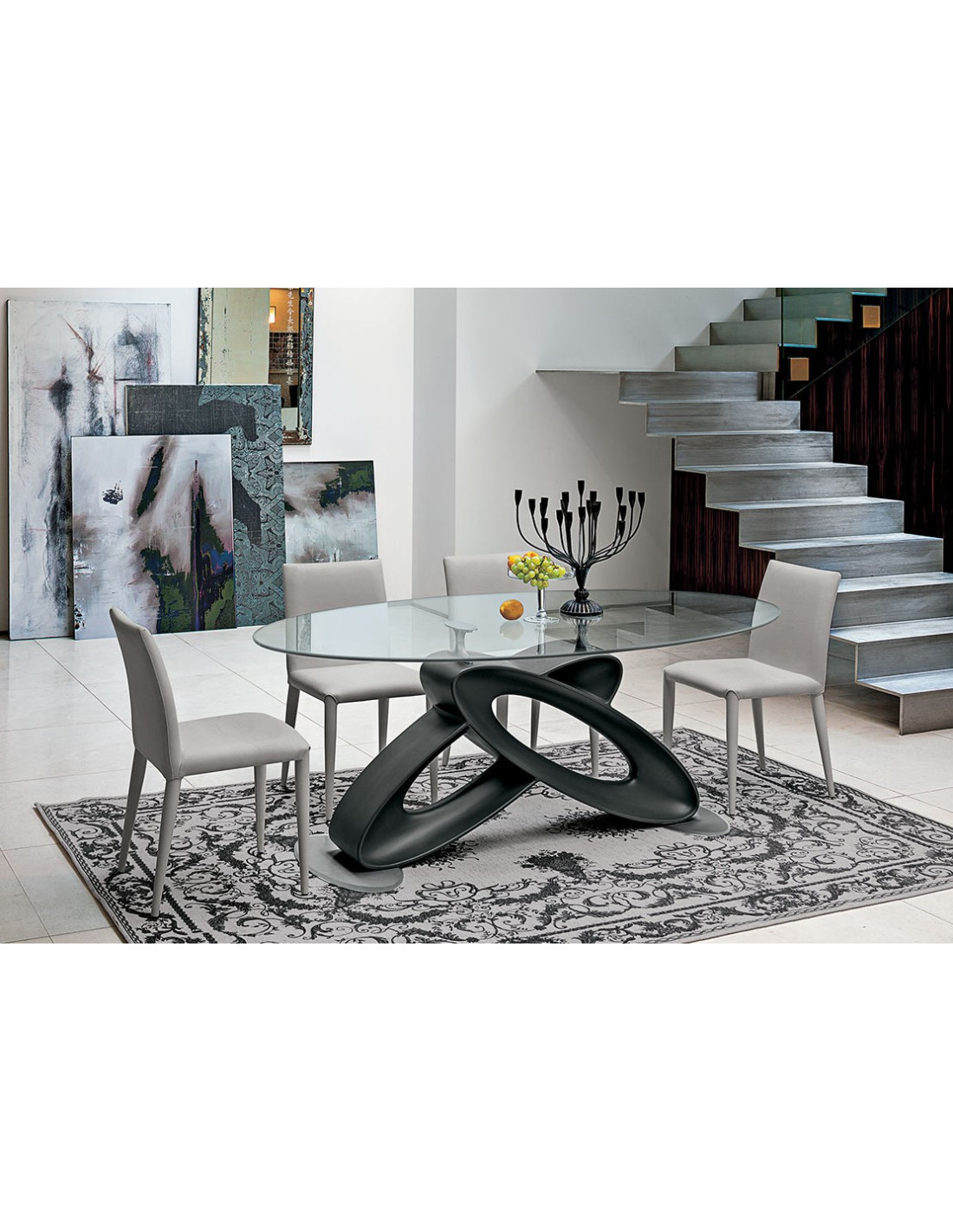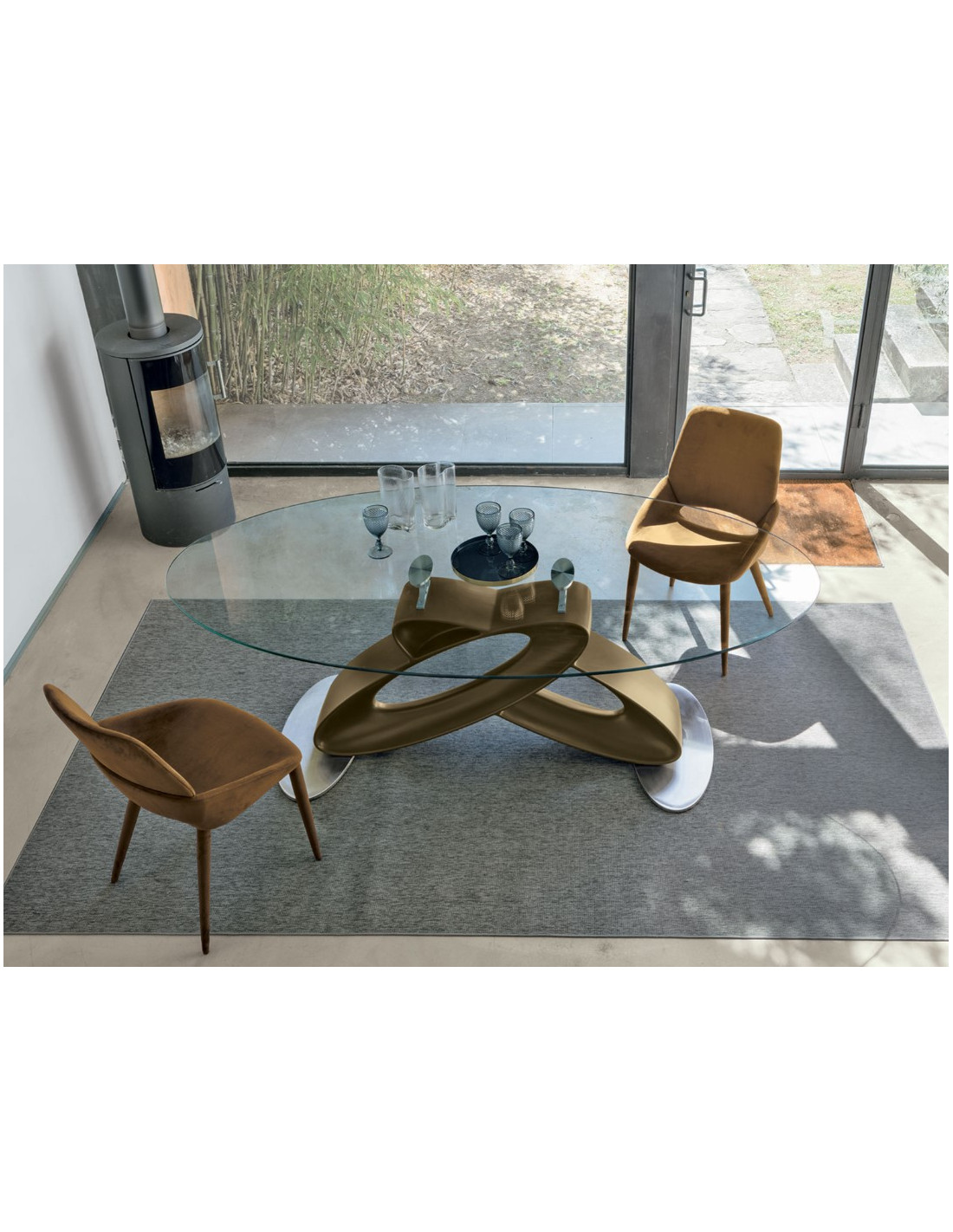 Il basamento del tavolo, ispirato a due ellissi che si incrociano, dona al tavolo un carattere unico e lo rende il protagonista indiscusso del tuo arredamento.